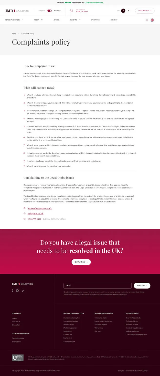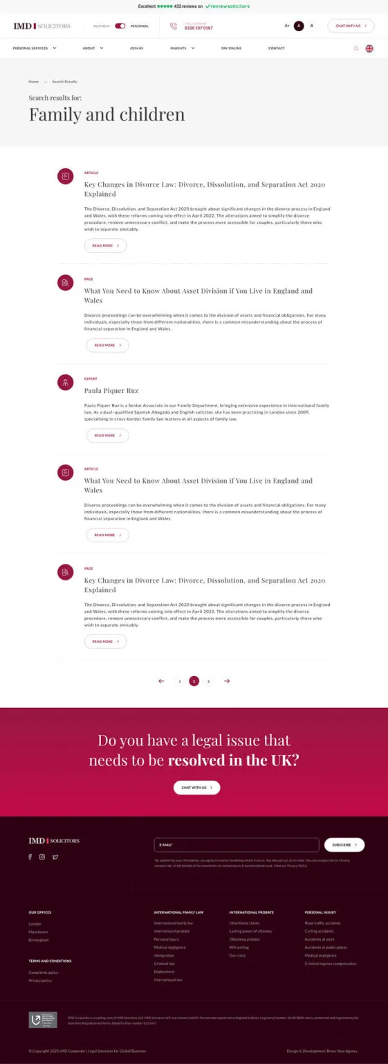 From a business perspective, the new IMD law firm website achieved:
